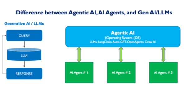 Figure 1: Difference between Gen AI/ LLMs, Agentic AI and AI Agents.