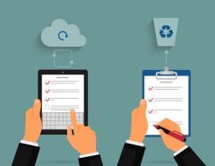 Tablet pc and notepad with task list No HTML5 audio playback capabilities for this browser. Use Chrome Browser! Posted By: Roberta Mullin December 10, 2019 Businessman using tablet pc and notepad with task list. Cloud synchronization concept