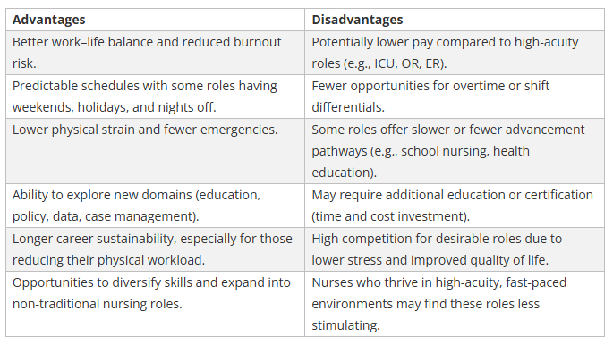 As more nurses seek balance, flexibility, and long-term career satisfaction, non-bedside nursing jobs have become increasingly attractive. However, like any career decision, there are trade-offs. Below is a breakdown of the advantages and disadvantages of non-bedside nursing jobs to help you determine if this path aligns with your goals and needs.